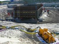 Wellpoint dewatering with 44 wellpoints including open pumping. Total exavation 4.5 m below sea level. Water removed at 700m3/hour - 24 Hours. |
