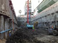 Wellpoint dewatering along one side of the site as to allow for the construction pile caps and lift shaft. Installation of 60 wellpoints at 3.5m below sea level. Water removed at 160m3/hour - 24 Hours. |